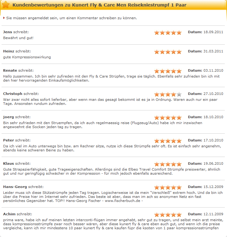 Für Vielreisende oder Flugbegleiter hat die Firma Julius Kunert Reisestrümpfe entworfen, die hochwertig verarbeitet sind und dazu noch ihre Zweck erstklassig erfüllen. Durch das Tragen dieser Reisekniestrümpfe gibt es eine Gefahrenreduktion für Thrombosebildung und dank der Stützklasse 3 werden die Beine auch ausreichend gestützt. Druckfrei, handgekettelte Spitze, perfekte Passform und hochwertige Verarbeitung sind die Merkmale dieser Reisestrümpfe.